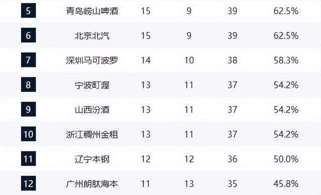 上海反超广厦升至第1,广东3连败第3,山东守住前4,辽宁跌出前10